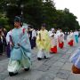 「祓戸」での神事を終えた後、神職の列は舞殿に進みます。