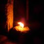 参道脇には、地面すれすれにある石の燭台に大きな蝋燭が立てられ、参道を照らしてくれます。