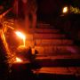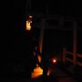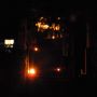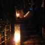 蝋燭に照らされた女坂を上ります。台風の影響で風が強く、炎が大きく揺れてます。