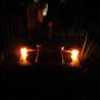 灯りが漏れるご本堂(観音堂)と、蝋燭に照らされた境内は、異空間モード全開です。