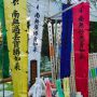 ご本堂前には、笹に「五如来」の幡の施餓鬼檀が設けられました。