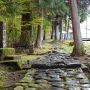 右手に「別所跡」があります。明治の廃仏毀釈で修験道が禁止されてからは、このように人の住まない場所になってしまいましたが、このあたりはもともと日光修験道の中心地で、室町時代には本地堂、千手堂、根本日満の社など五百を超える僧坊があって大変栄えていました。有名な輪王寺の「強飯式」もここが発祥の地とされています。