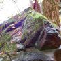 小川を渡って少し先には「子種石」があります。その名の通り子供を授かるよう祈願する参拝客が絶えません。また、この石は礼拝石又は助石とも呼ばれ、強飯式で気絶した行者をこの石の上に乗せると蘇生したと伝えられています。
