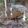 「三重塔」と「観音堂」の間にあるのが、野天に造られた不動明王の護摩壇です。こちらは、日光修験道の遺跡であり、かなり古いものです。裏手に写っているのは日光幼稚園です。