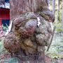 これは「こぶをなでると、喜びが廻って来る」という「こぶ杉」です。何かの理由で幹の下部を残して切断されていますが、まだ小枝を伸ばしています。
