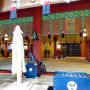 「日枝神社」近くの建物には、弥生祭の「神前献備」で使用されていた「松原町・本家体(ほんやたい)」と「鉢石町・萬度(まんと)」が納められていました。