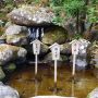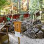 「二荒霊泉」の奥に「日光連山遥拝所」があります。大きな石を積み上げて日光連山を模したもので、本物の男体山の頂上と同じく大きな神剣が立っています。