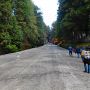 神橋から深沙王堂横の長坂を北西に登り、勝道上人像を左に折れ暫く歩くと、日光東照宮表参道の起点にたどり着きます。ここから東照宮方面を向くとはるか遠くに表門の赤色が見えます。