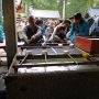 中の「水盤」は、創建当初より存在しています。水は、サイフォンの原理を利用して、おそらく2km以上は離れている滝尾神社付近から引いてきているとのことです。