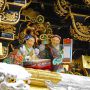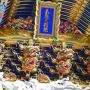 磨き上げられた黒漆に金箔が輝く組物は、一層目が四手先、二層目が三手先となっており、格式の高さが伺えます。