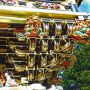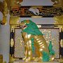 白い「胡粉(ごふん)」に金箔が施された唐獅子が、何体も取り付けられています。