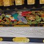 国宝「陽明門」は、京都御所の東正門の名を頂いたもので、日光東照宮創建当初より存在しており、他の主要建造物同様に「寛永の大造替」において造替えられています。その後、幾度も改修は行われていますが、最大の修復工事は「平成の大修理」で4年半をかけて昨年(2017年)3月に完成しました。使用された金箔は24万枚(京都・金閣寺の20万枚を上回る枚数)、総工費は約12億円となっています。大修理を終え、家光の時代の鮮やかな彩色彫刻で埋め尽くされたその姿は、絢爛豪華の一言に尽きます。一日眺めていても飽きない「日暮し門」と云われる所以でしょう。