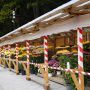 「御旅所」は、春と秋の「神輿渡御祭(百物揃千人武者行列)」の目的地となっており、日光二荒山神社を出た行列は、上新道、表参道、中山通を経由してここに到着すると「御旅所祭」が始まります。「御旅所祭」では「三品立(さんぼんだて)七十五膳」と呼ばれる豪華な神饌が供えられ、「東遊」「八乙女の舞」が、奉納されます。