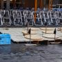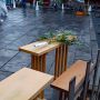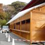 舞殿北側の石畳を中心に、会場の設営が進みます。