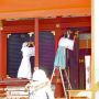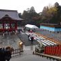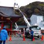 「御鎮座記念祭」に先立つ12月13日には、煤払いが行われ、舞殿では高所作業車が出て清掃作業が行われていました。