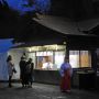 「人長の舞」が終わると音曲も静まり、提灯に先導されながら、ご神職の皆さんが社務所に引き上げて参ります。