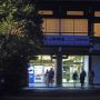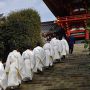 真白な束帯をお召になったご神職が社務所の前に並んでおられます。