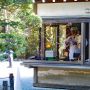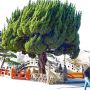 太鼓橋のイヌマキの木は、この季節でも青々としています。