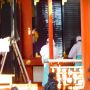 ご神職が、本宮での神事のため、大石段を上がって行きます。