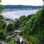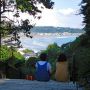 このあたりから後ろを振り返ると、遠くに由比ヶ浜が見えます。