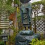 こちらは、平安時代から鎌倉時代にかけて活躍した怪僧・文覚上人の荒行像です(なお、庭にあるこの石像は模造品で、本物は木造です)。なお、これにそっくりの文覚上人の荒行像が、補陀落寺に安置されています。