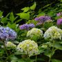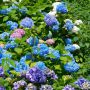 ◎遠くに由比ヶ浜を望む東北参道に今も残る色とりどりの紫陽花