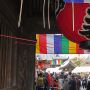 御本堂には五色幕が掲げられています。