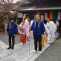 「客殿」前から、祈祷会が行われる夷堂に出発です。