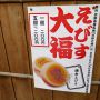 葉山「日影茶屋」が、「日影大福」をベースに焼印をえびす様にした「えびす大福」を販売していました。「日影大福」は、前から食べてみたかったので一個だけ頂きました。薄く柔らかい生地に包まれた餡は、立ち食いにはもったいない上品な甘さでした。