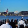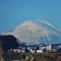 稲村ヶ崎の向こうには、真白な富士山が見えます。