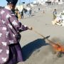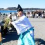 材木座海岸に着くと、神社境内での奉納とは異なり、とても広く結界が張られ神楽場が設けられていました。