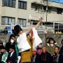 他の地区と比べて少し早目ではありますが、神札や正月の縁起物を焚き上げる「どんどん焼」が行われます。ご神職が、湯釜の火を湯たぶさにいただき、着火します。