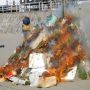 「どんどん焼き」に持ち寄られた神札や正月の縁起物が積まれていました。