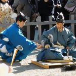 介添が射手の「浅沓(あさぐつ)」を揃えます。