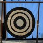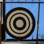 「蟇目の儀」では、この青の「的革(まとかわ)」を目がけて鏑矢が射られます。「大的」は「蟇目の儀」が終わってから掲げられます。