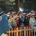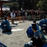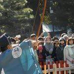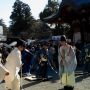 初詣客は、まだまだ沢山いらっしゃいます。「除魔神事」の特設会場の周りを大勢の見物客が取り巻いています。
