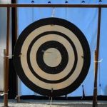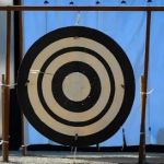 「蟇目の儀」のあと、青い「的革」の前に「大的」が掲げられます。