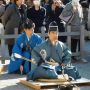 「蟇目射手」以下が、床几に戻ります。「的立役」は、「矢拾役」から、「蟇目射手」の放った鏑矢を受け取り、戻ってきます。
