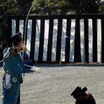 以下、「三郎」のアップの所作をギャラリーにしました。後弓の「三郎」は「観念」の所作で「武運長久家内繁栄」と唱えます。 こちらは、矢が的を貫通する瞬間も撮影できました。