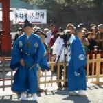 「大的式」を終えて、御神職を先頭に射手・諸役の皆さんが退出されます。