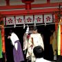 荏柄天神社の祭礼ということで、神門には梅紋が染め抜かれた紫の幔幕が張られています。