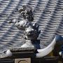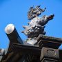 客殿の屋根では、狛犬が跳ねてます。