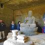 不動堂の前には「梅かまくら」参加者の皆さんが腰を下ろしていらっしゃいます。