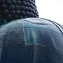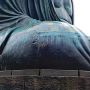 大仏の左肩には、大仏殿が崩落した際に付いたとおもわれる窪みの補修跡があります。
