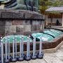 鎌倉大仏背後の地面には、蓮の花弁を模した青銅製の部材が並んでいます。これらは、元文二年(1737年) の修復に続き大仏を蓮華座に載せた形に仕上げようとして準備していたもので、残念ながら 全ての蓮弁を鋳造することができず現在に至っています。