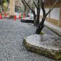 少し進むと書院裏の日本庭園に入る棟門が見えます。扁額には「観月」と書かれています。となりに茶室があります。