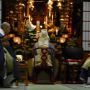 仏殿では、臨済宗の僧侶が、三世仏の前で読経します。