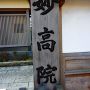 総門を入って、受付を済まし、三門に向かって右側の石垣の上に一段高く見えるのが妙高院です。