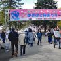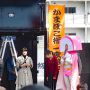 かまぼこ桜まつりが開催中で、被り物のキャラクタも出演していました。入口のすぐ右側に立つ明治天皇の行幸を記念する石碑が時代を感じさせます。
