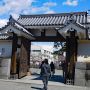 小田原城の守りの要「銅門(あかがねもん)」です。火矢にも耐えるよう 扉の表面を銅板で覆っているためこのように呼ばれています。こんなに美しい姿をしていますが、馬屋曲輪から侵入してきた敵が枡形に突入すると二方向より十字形に鉄砲を射かけて殲滅する仕掛けとなっており、実は肉食系です。この日は特別公開で、銅門の内部に入れてもらえました。